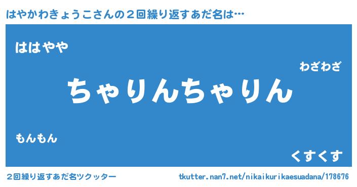 | 意味不明あだ名 | 『はやかわきょうこフォーエバー』 |