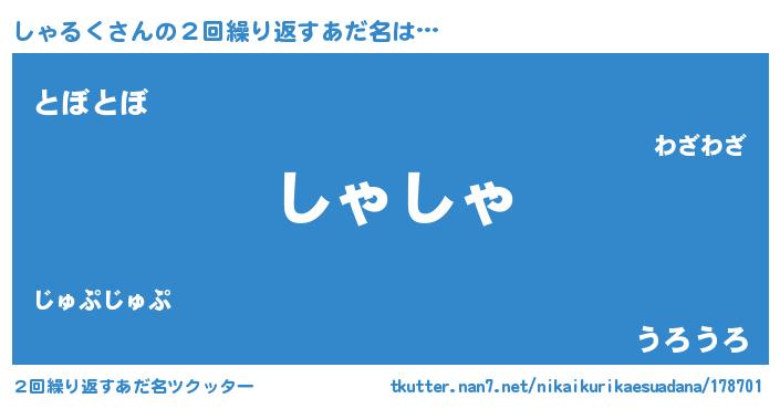 | 欧米人風あだ名 | 『マイケルしゃるく』『ウサインしゃるく』 |