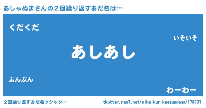 | ヘコむあだ名 | 『あしっふぃ~』『あしゃぬま(遠い目)』 |