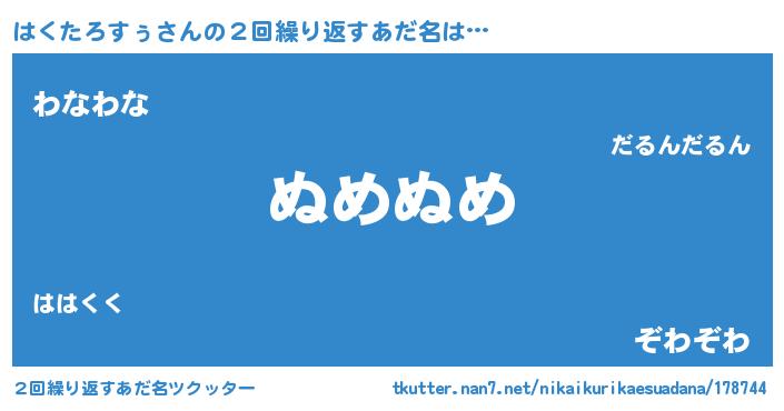 | 男性向けラノベタイトル風あだ名 | 『はくたろすぅの嫁は女の子じゃないと思った?』 |