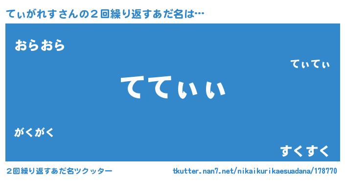 | 意味不明あだ名 | 『てぃがれすフォーエバー』 |