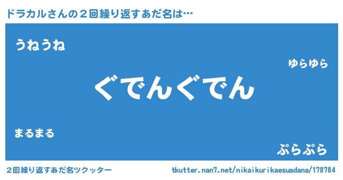 | 意味不明あだ名 | 『永久保存ドラカル』『自称ドラカル』 |