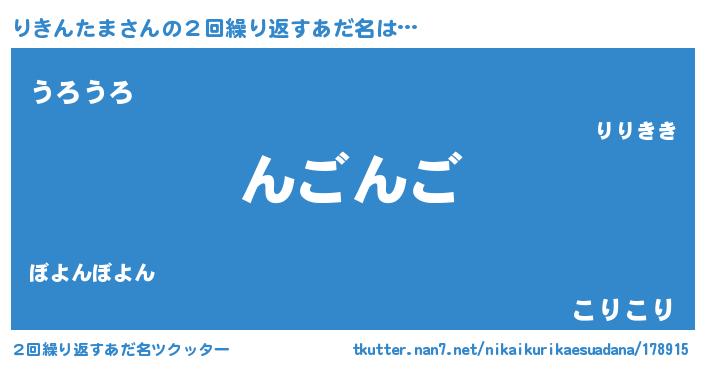 | 男性向けラノベタイトル風あだ名 | 『りきんたま~年齢イコール彼女いない歴の魔法使い~』 |