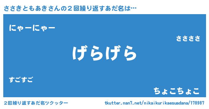 | 意味不明あだ名 | 『永久保存ささきともあき』 |
