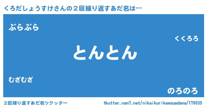 | 男性向けラノベタイトル風あだ名 | 『うちのくろだしょうすけが世界を掌握している!』 |