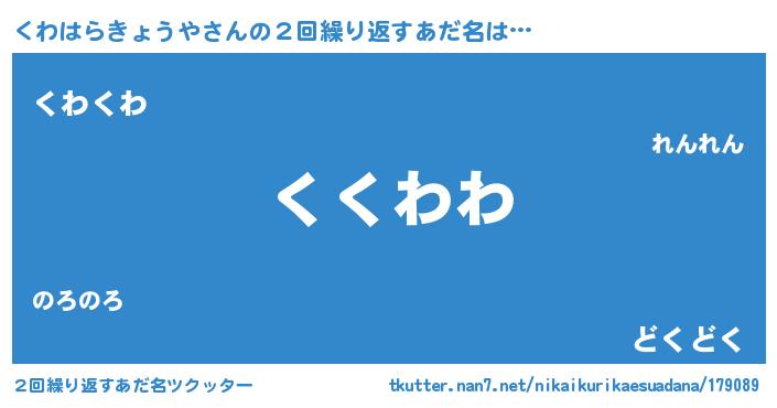 | 欧米人風あだ名 | 『くわはらきょうやクリステル』 |