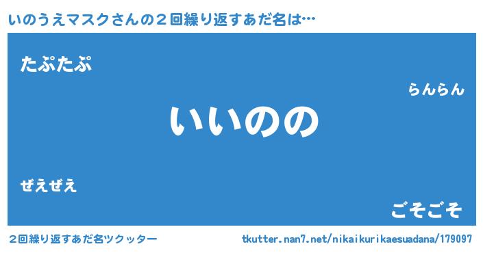 | 意味不明あだ名 | 『いのうえマスクフォーエバー』 |