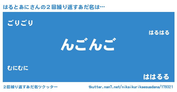 | 胡散臭い通販商品みたいなあだ名 | 『前代未聞の健康食品…その名も「はるとあに」』 |