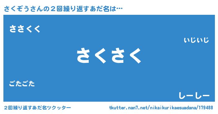 | 意味不明あだ名 | 『ペロリンさくぞう』『永久保存さくぞう』 |