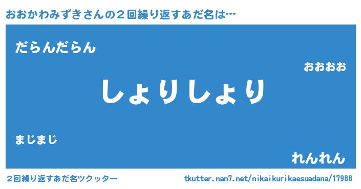 | 男性向けラノベタイトル風あだ名 | 『この素晴らしい世界におおかわみずきを!』 |