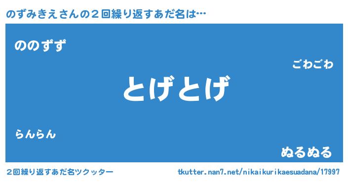| 意味不明あだ名 | 『のずみきえフォーエバー』 |