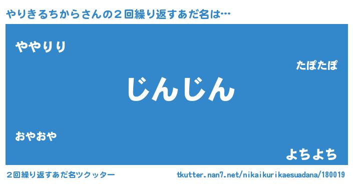 | 意味不明あだ名 | 『住所不定無職やりきるちから(43歳)』 |