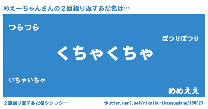 | 意味不明あだ名 | 『永久保存めえーちゃん』 |
