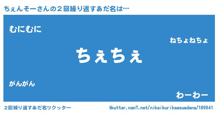 | ヘコむあだ名 | 『ちぇにゅー』『ちぇぷりん』 |