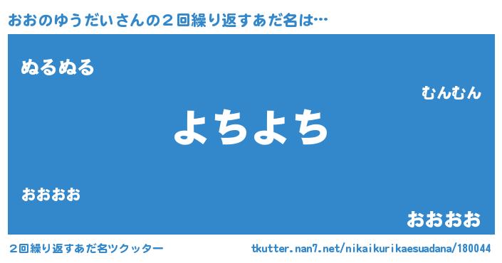 | 欧米人風あだ名 | 『トリンドルおおのゆうだい』 |