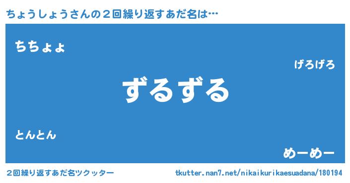 | 意味不明あだ名 | 『住所不定無職ちょうしょう(10歳)』 |