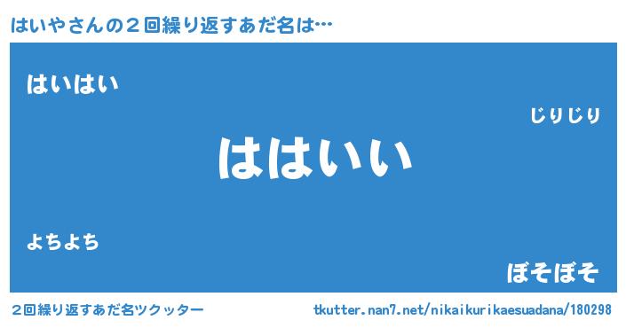 | ヘコむあだ名 | 『なまこ酢』『はいっふぃ~』 |