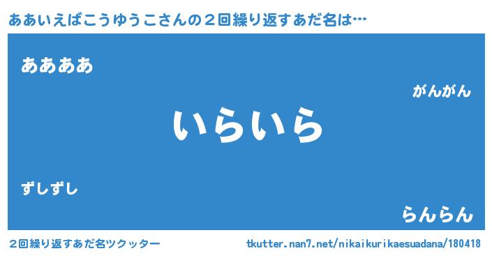 | ポケモン風あだ名 | 『ヒアアイエバコウユウコ』『アアイダネ』 |