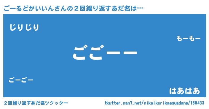 | 意味不明あだ名 | 『ごーるどかいいんフォーエバー』 |