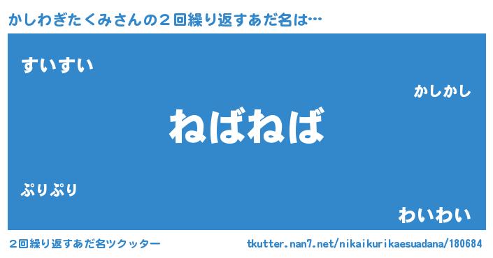 | ポケモン風あだ名 | 『ヒカシワギタクミ』『カーシイ』 |