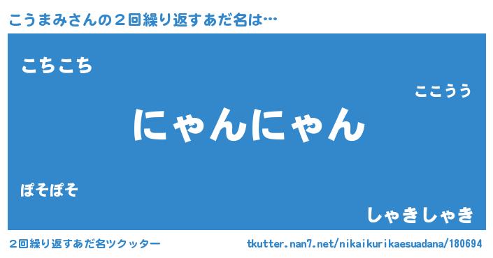 | 意味不明あだ名 | 『とにかく怪しいこうまみ』 |