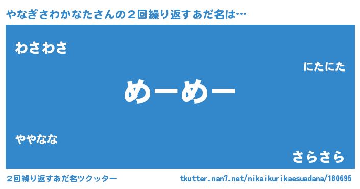 | 意味不明あだ名 | 『自称やなぎさわかなた』 |