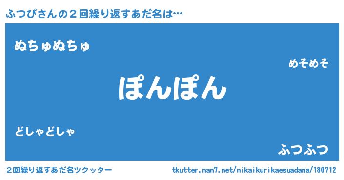 | ポケモン風あだ名 | 『フックウザ』『ヒフツピ』 |