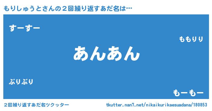| 意味不明あだ名 | 『とにかく怪しいもりしゅうと』 |