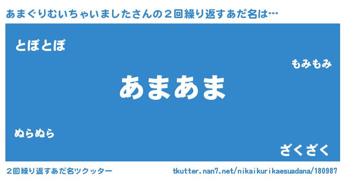 | 欧米人風あだ名 | 『アンジェラ・あまぐりむいちゃいました』 |