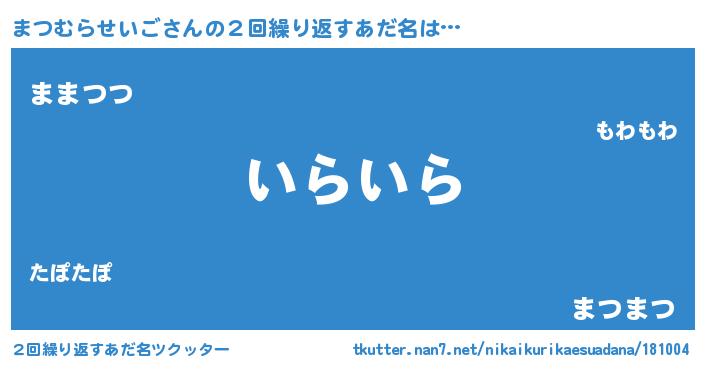 | 意味不明あだ名 | 『とにかく怪しいまつむらせいご』 |