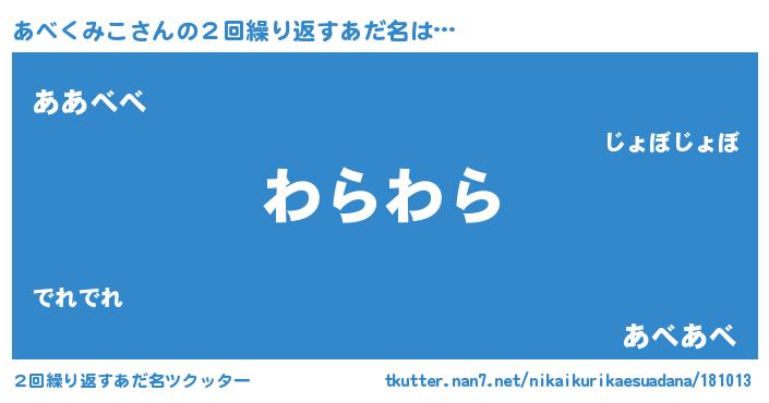 | 欧米人風あだ名 | 『アンジェラ・あべくみこ』 |