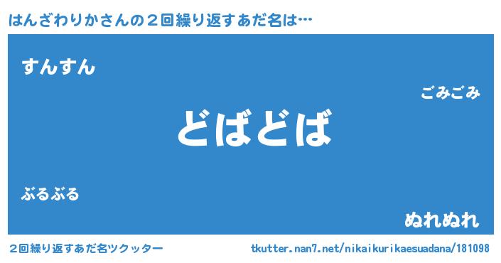 | 意味不明あだ名 | 『住所不定無職はんざわりか(7歳)』 |