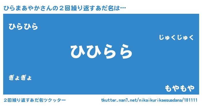 | 恥ずかしいあだ名 | 『ひらっちょ』『プリティーひらまあやか』 |