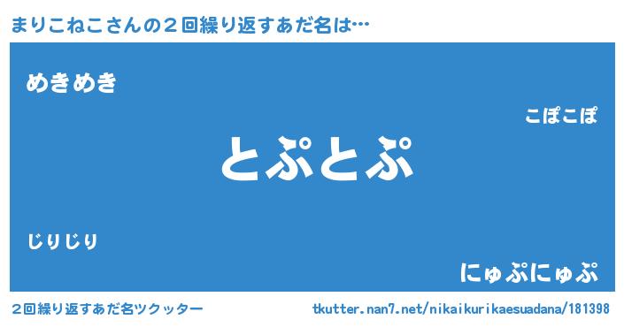 | 意味不明あだ名 | 『自称まりこねこ』『永久保存まりこねこ』 |