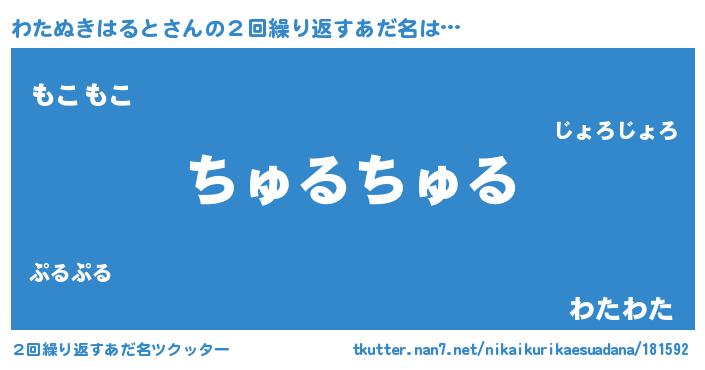 | 意味不明あだ名 | 『自称わたぬきはると』 |