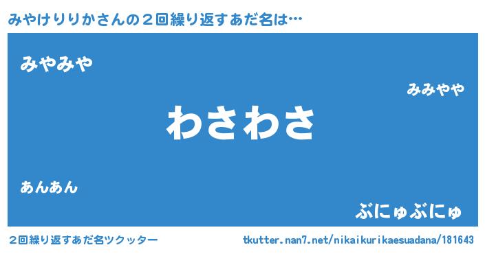 | ヒーロー風カッコイイあだ名 | 『スーパーミヤケリリカ』『黄金騎士ミヤ』 |