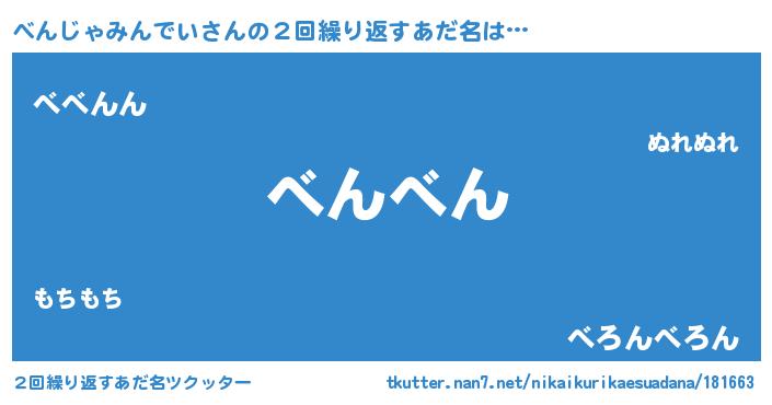 | ポケモン風あだ名 | 『ベンチュウ』『ベンジダネ』 |
