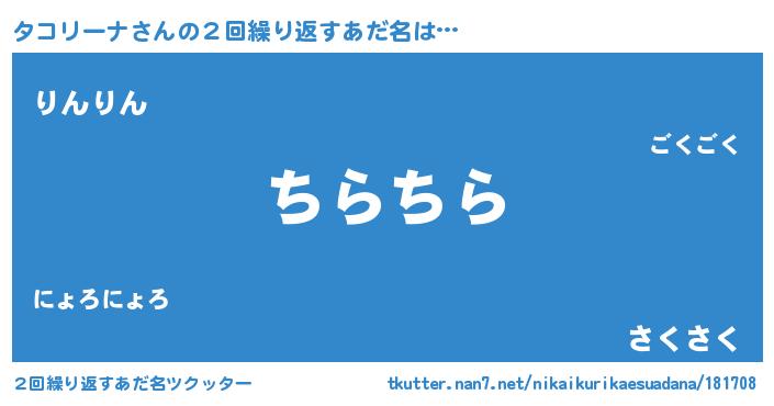 | ヒーロー風カッコイイあだ名 | 『仮面タコダー』『ネオタコリーナ』 |
