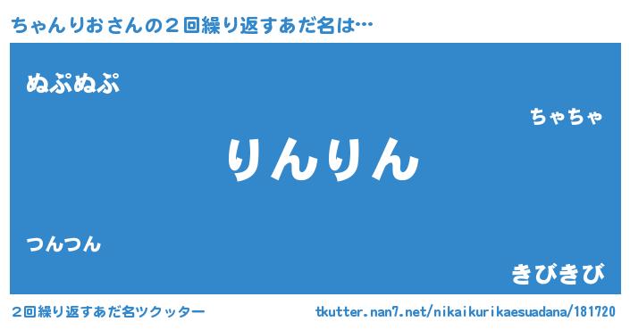 | 料理風あだ名 | 『ちゃんりおごはん』 |