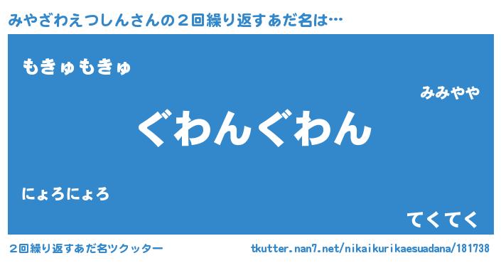 | ヘコむあだ名 | 『みやざわえつしん(小並感)』『牛乳』 |