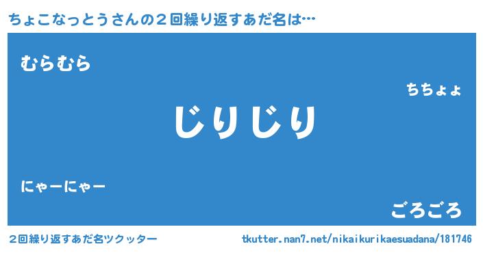 | 意味不明あだ名 | 『住所不定無職ちょこなっとう(85歳)』 |