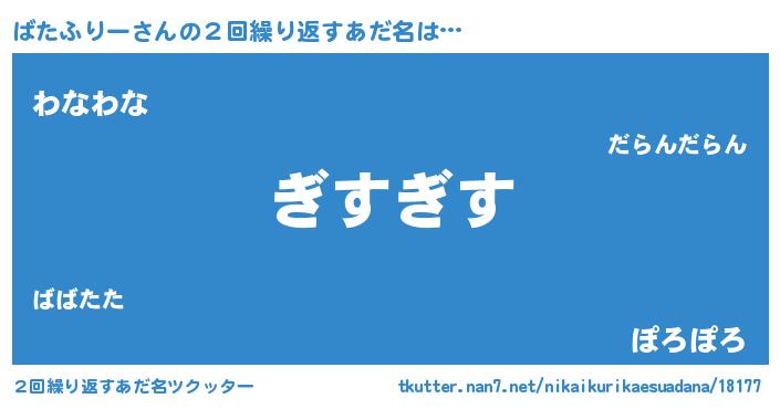 | 意味不明あだ名 | 『永久保存ばたふりー』『自称ばたふりー』 |
