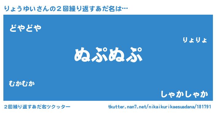| ヘコむあだ名 | 『りょぷりん』『りょっふぃ~』 |