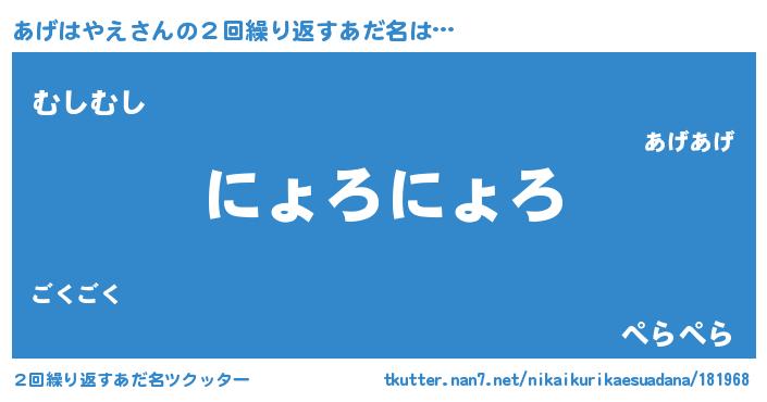| 男性向けラノベタイトル風あだ名 | 『あげはやえに滅ぼされるだけの簡単なお仕事です』 |