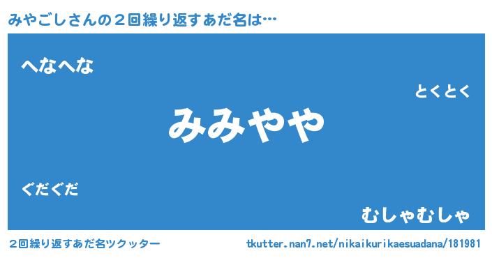 | ポケモン風あだ名 | 『ミヤゴンZ』『ミヤゴダネ』 |