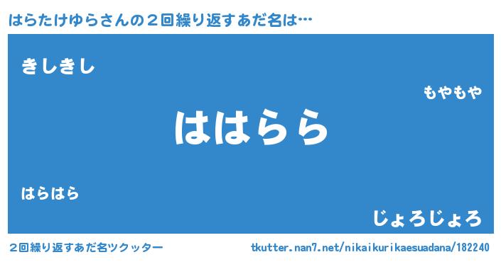 | 男性向けラノベタイトル風あだ名 | 『やはりはらたけゆらの青春ラブコメはまちがっている 』 |