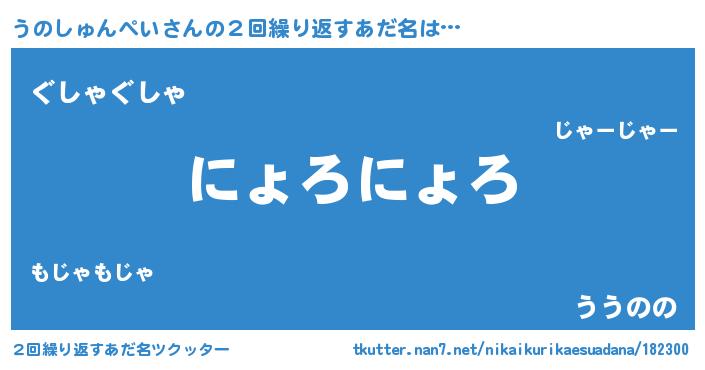| 男性向けラノベタイトル風あだ名 | 『うのしゅんぺいに滅ぼされるだけの簡単なお仕事です』 |