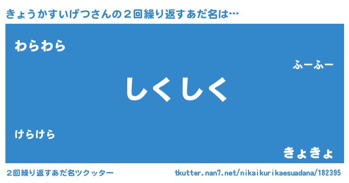 | 料理風あだ名 | 『きょうかすいげつのカルパッチョ風』 |