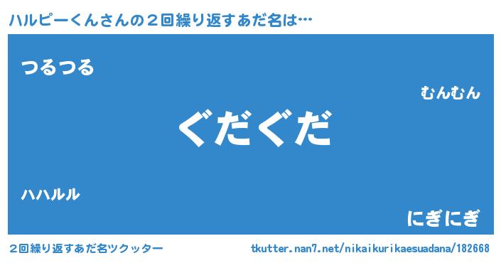 | 意味不明あだ名 | 『永久保存ハルピーくん』 |