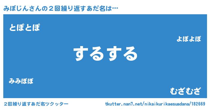 | 意味不明あだ名 | 『住所不定無職みぼじん(5歳)』 |